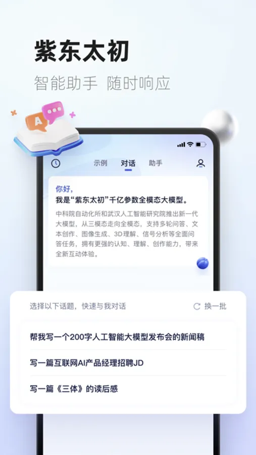 紫东太初多模态大模型,拥有强大的认知、理解、创作能力,能够基于自然对话方式理解与执行任务,帮您提升工作效率和生活体验。