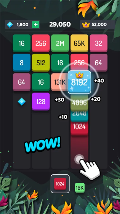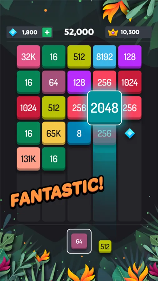 * Tap and Drop: Drop or shoot number blocks to your desired location, allowing them to merge into blocks with higher numbers.