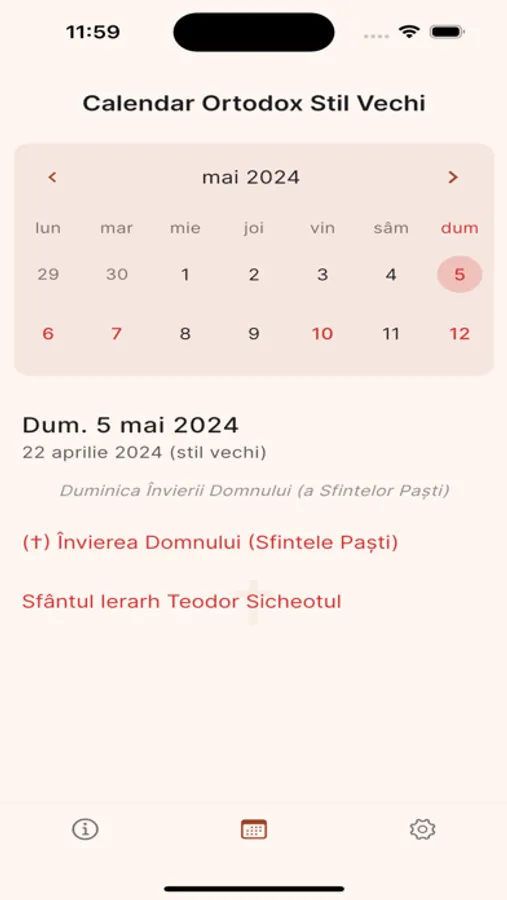 Calendar Ortodox Stil Vechi este o aplicație care afișează sărbătorile și Sfinții din cursul anului. Pe lângă acestea, aplicația oferă și notificări pentru sărbătorile și Sfinții care sunt sărbătoriți în fiecare zi. Notificările pot fi dezactivate din Setări.