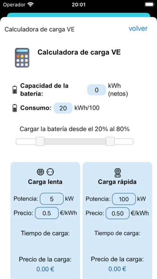 - Una calculadora e tiempo y precio de la carga del vehículo, tanto en casa (lenta) como fuera (rápida en puntos de carga pública)