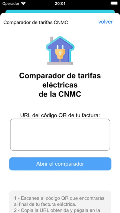 - Un comparador de tarifas eléctricas a partir de tu factura, para la carga en casa. (Servicio de CNMC)