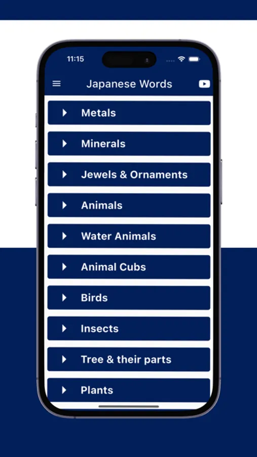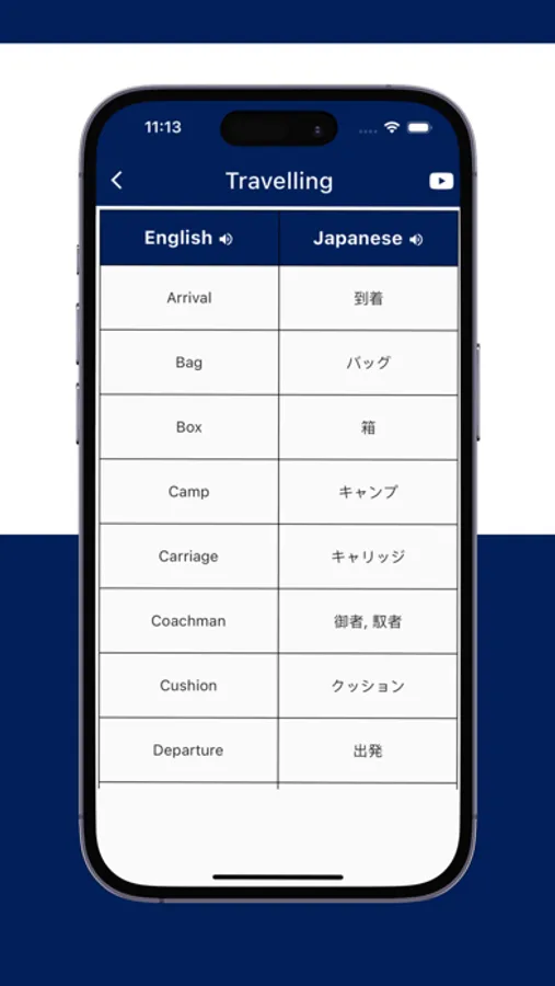 Rich Vocabulary: Explore an extensive collection of Japanese words across different categories, including greetings, numbers, food, travel, emotions, and more. Each word is accompanied by its English translation for easy comprehension.
