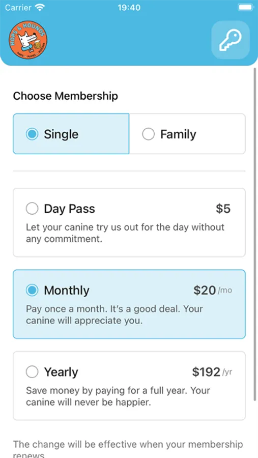The app provides users a simple platform to manage access into Hops & Hounds dedicated dog parks. Download the app, create a profile, select your participation level and watch your hounds have the time of their lives.