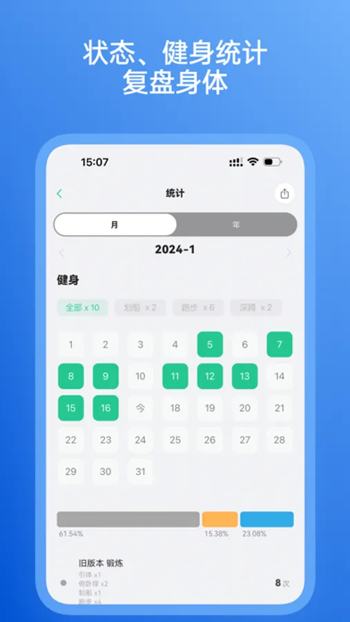With HeaFit, you can easily record and track various key indicators including body weight, body fat percentage, chest circumference, waist circumference, thigh circumference, and more. Additionally, in terms of fitness, you can track and record activities such as running, squats, bench press, push-ups, etc.