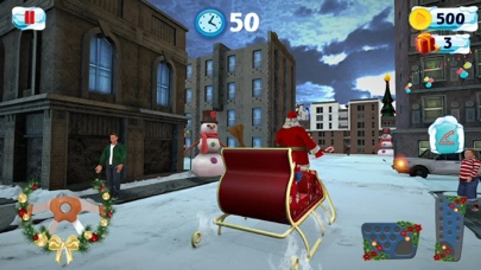 in the Santa Claus game, All the children are playing with the fluffy snowman around the city. Now it's time for Santa Claus to spread happiness all over the globe in the Santa Claus Wala game. Play the beloved Santa now during this Christmas Eve day, you get the Santa cart full of gifts attached with jingle horses in the Christmas game. Your mission is to ride this horse sleigh as well as reindeer sleigh as Santa Claus and deliver these precious gifts to kids in the Santa Claus Wala game. This beautiful Christmas game provides you with the role play that kids love during the Christmas holidays. Children are skating on snow and making a snowman in their playgrounds; your duty is to give some precious gift to them in the Christmas shopper simulator. Ride them on your sleigh and visit the whole city in the Santa Claus game.