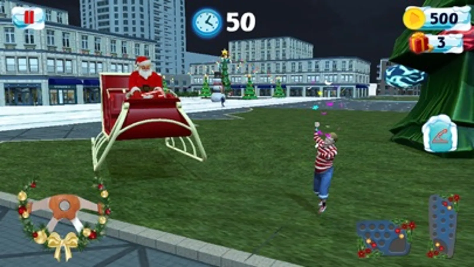Christmas Santa Claus Gift Simulator and Flying Santa Claus and deliver gifts to children using your Christmas Sleigh children in the Santa Claus game. Everyone is happy, everyone is enjoying because it's Christmas. New Year is coming. Everyone is throwing parties at their family members. Parties season is on. Gifts are being traded everywhere full of love with each other. Town people are very excited and children are anxiously waiting for Santa claus to come and give them gifts in the Christmas shopper simulator. People have placed Christmas trees full of jingle bells and Christmas stars along the roadsides and the doorstep of each house in the Christmas game.