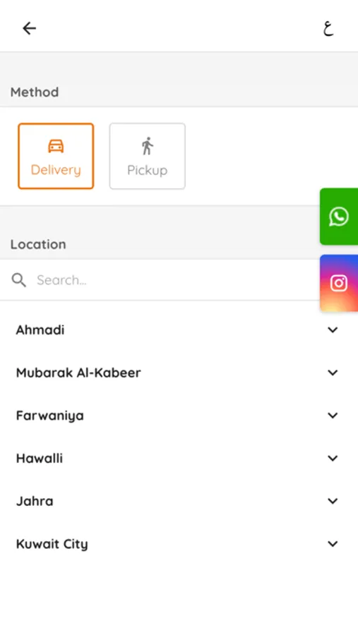 6. اختر الوضع المفضل لديك للطلب سواء الدليفري أو التيك اواي
