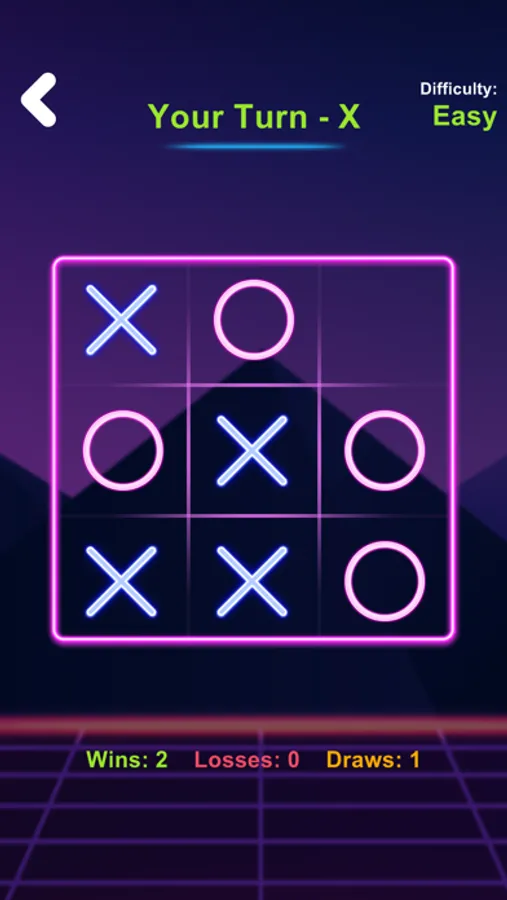 Experience the classic game of Tic Tac Toe with a dazzling twist in Tic Tac Toe Glow! Immerse yourself in a visually stunning and neon-infused environment as you challenge to 3 different AI.