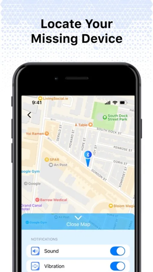 Proximity Meter: Gauge the distance to your lost device with a highly accurate proximity score displayed on a 100-point scale.