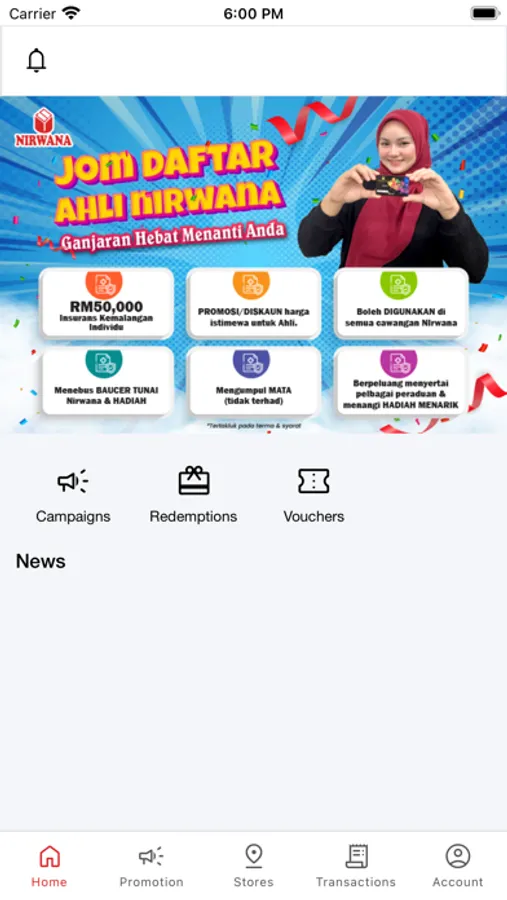 Get rewarded when you shop with Nirwana app at any Nirwana outlets in Malaysia. You will get to collect Points and redeem vouchers.