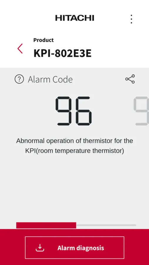 - Select on your smartphone the alarm code displayed on the Hitachi air conditioning unit