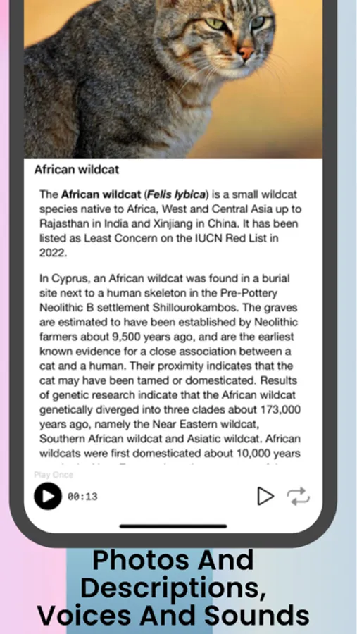 The main functions of the application are free - for each species of animal you can view its image and text description and add species to Favorites (these functions are available offline), as well as play a recording of its voice (if you have an Internet connection and no more than 1 time per minute).