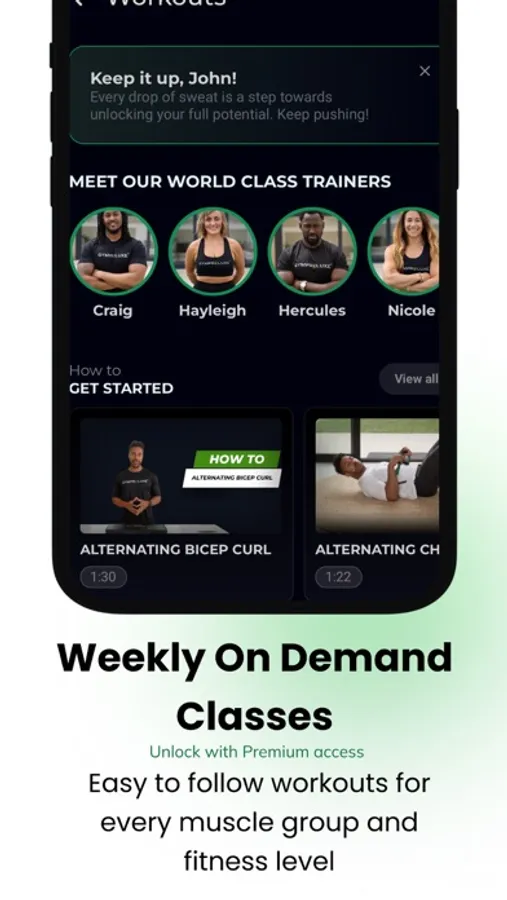 With the Gymproluxe App, you will have access to workout programs designed specifically to help you reach your fitness and health goals! You can follow & track your workouts, your nutrition, your lifestyle habits, measurements, and results–all with the help of your coach.