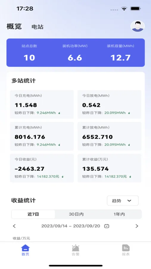 面向储能终端用户,提供发电与用电数据查看,优化能源供给,通过即时提醒和远程访问功能随时随地监控能源设备。