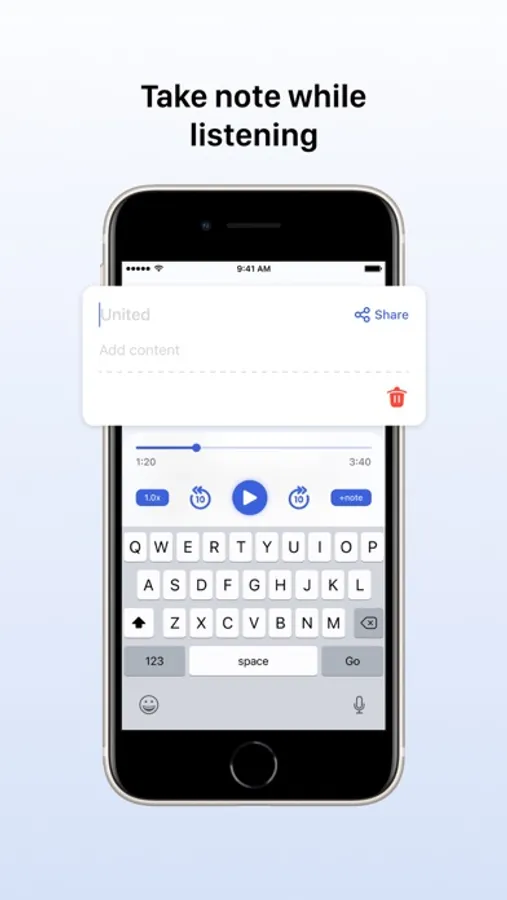 Listening to content and jotting down notes has never been easier. Listenable allows you to take notes directly within the app while listening, ensuring that your insights and thoughts are seamlessly captured. This dual functionality eliminates the need to switch between apps, providing a smooth and efficient way to consolidate information and enhance your comprehension.