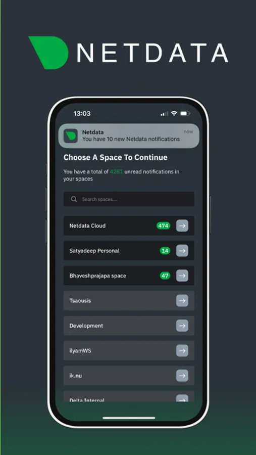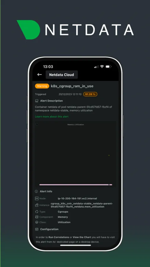 Netdata Notifications App allows you to receive and manage Alerts and Notifications for monitoring your infrastructure. It provides a dynamic way of monitoring and troubleshooting on the fly.