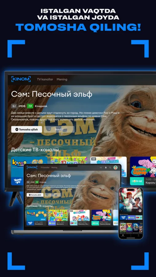 Televizor, smartfon yoki planshetda — yuklab oling va sevimli kontentingizdan har qanday platformada bahramand bo'ling!