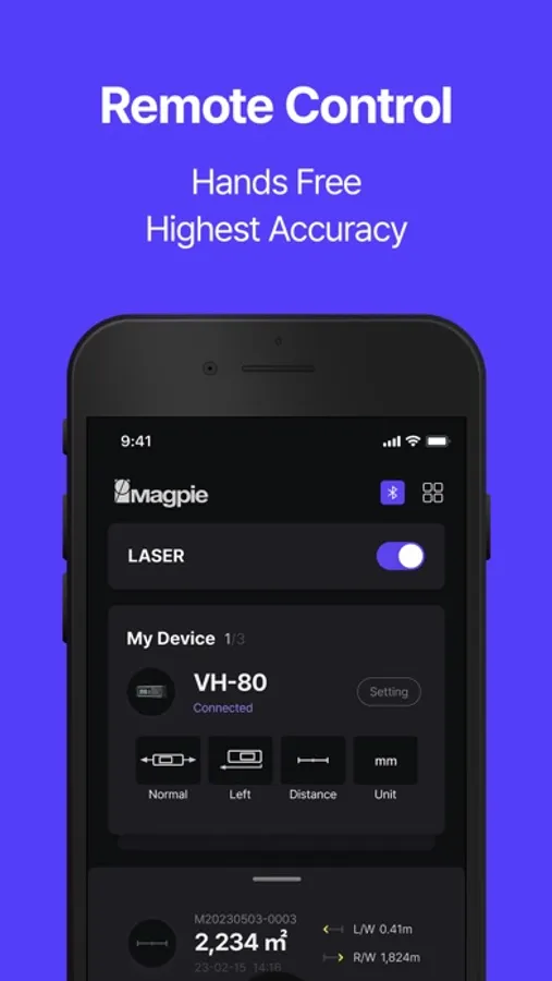 With remote control, real-time measuring value transfer, sketch-making, and material calculation features, the app helps you complete even more measuring tasks with greater ease and efficiency.