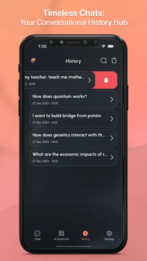 - History: Rewind and revisit your chat history with ease, ensuring no moment is lost.