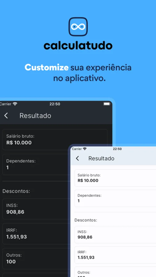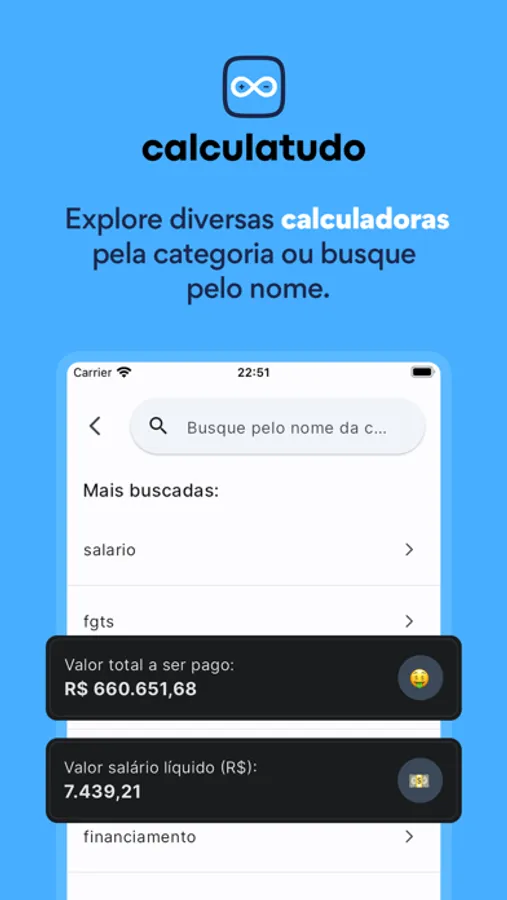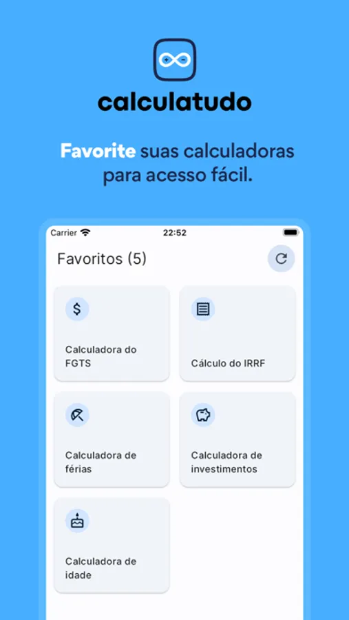 Sua segunda calculadora! Com mais de 35 calculadoras integradas, facilite seus cálculos de férias, salário, porcentagem, IPVA, décimo terceiro, investimentos e muito mais — tudo em um único app prático e completo.