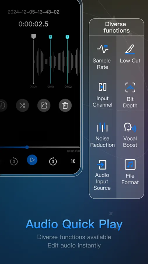 • Extended functions: Support sampling rate, low-cut, audio noise reduction, vocal enhancement, format switching and other functions