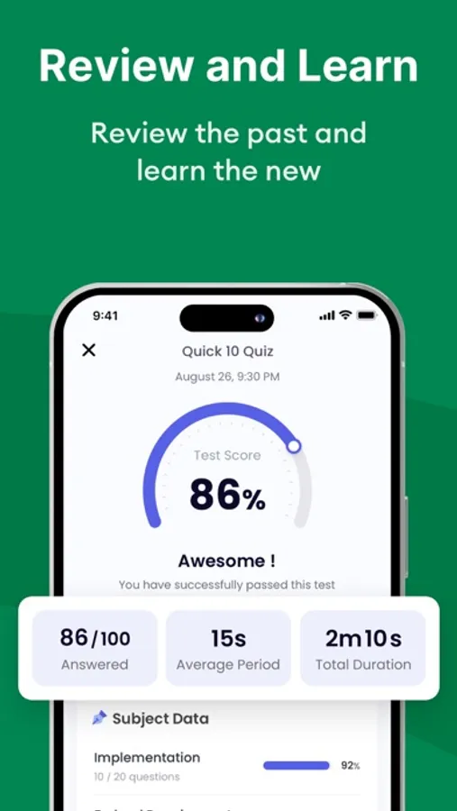 - All questions are categorized by exam subjects