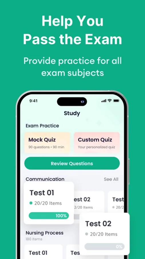 Foundations of Nursing introduces nursing students to a holistic framework for the nursing process, the functional health model, nursing practice, and the comprehensive assessment of the patient, which is the pathway to applying for certification as a nurse at a more advanced level. Our application not only perfectly supports the preparation for these two exams, but also makes it easier for you to pass the exams through the professional design of the exam experts!