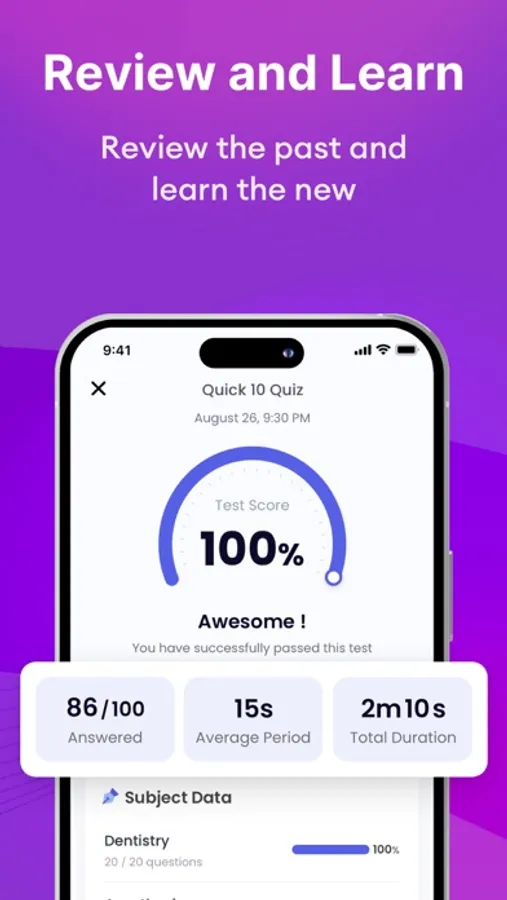 - All questions are categorized by exam subjects