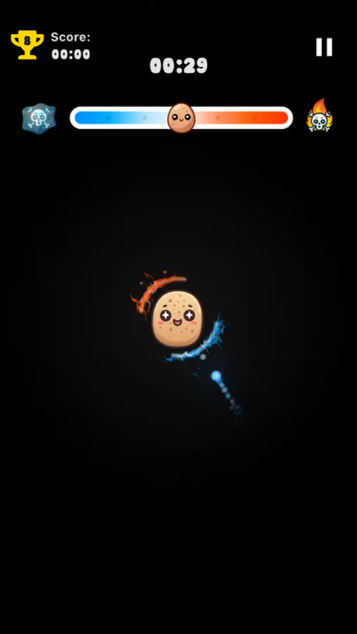 Just press and hold to spin those shields! Keep the heat bar happy - not too hot, not too cold. It's like keeping your potato at the perfect cozy temperature. Easy, right? But watch out, it gets trickier the longer you play!