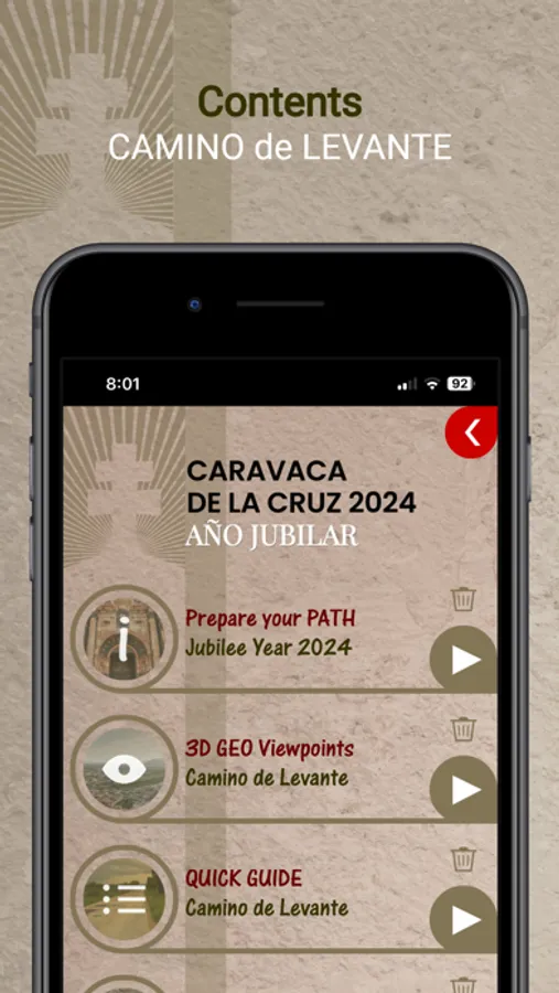 GET READY FOR YOUR JOURNEY!... The fifth holy city in the world is in SPAIN. Eight pilgrimage routes lead pilgrims and travelers to CARAVACA. The most well-known, the LEVANTE WAY, connects ORIHUELA and MURCIA with CARAVACA de la CRUZ.