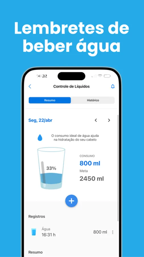 - Controle de líquidos e água ingeridos