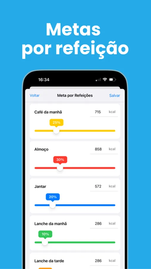 - Crie uma meta de calorias e macros