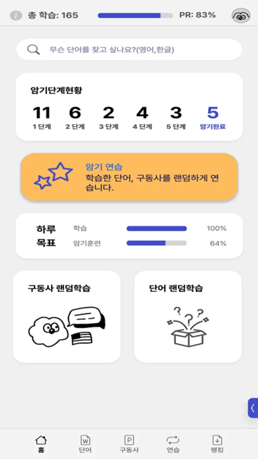 Employing the Leitner memory flashcard technique, test and memorize words randomly from your study deck.