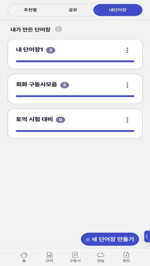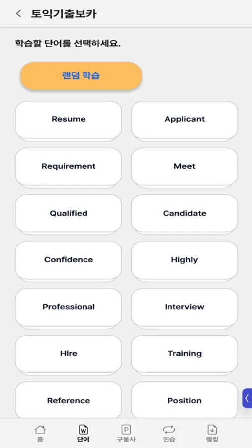 Later, you can randomly learn from the words you've added to your custom lists.