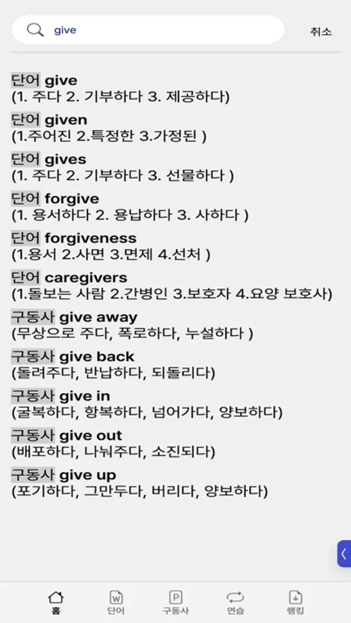 4. Word/Phrasal Verb Search: