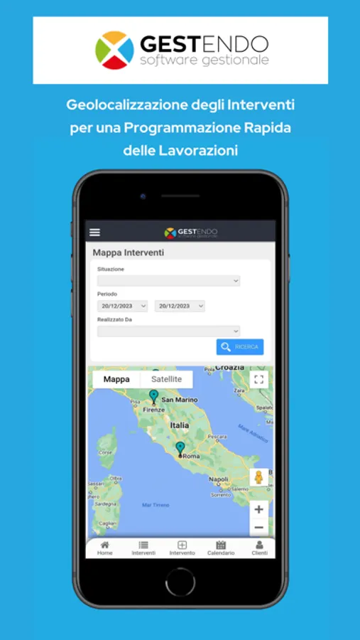 Gestendo offre la possibilità di ottenere le indicazioni stradali per raggiungere i clienti con un semplice click. La geolocalizzazione dei tuoi clienti ti permetterà di evitare sprechi di tempo.