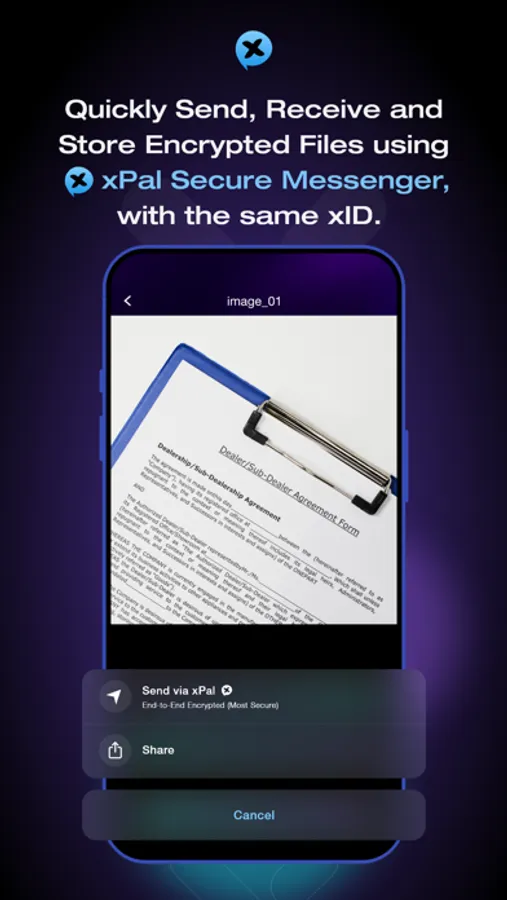 Xave provides you with more than just a secured local encrypted space on your device. It also allows you to send and receive encrypted files through xPal Secure Messenger, without the need for any additional registration.