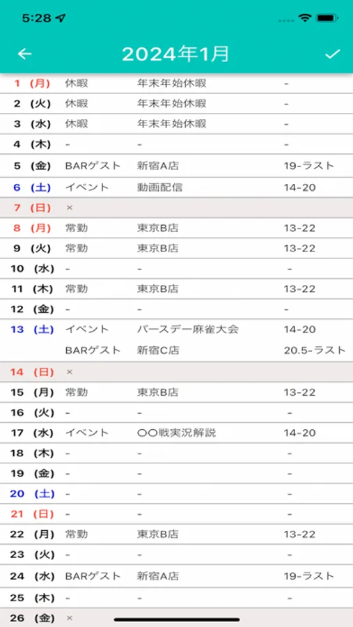 シフトタイム/縦型カレンダーであなたの時間を一括管理