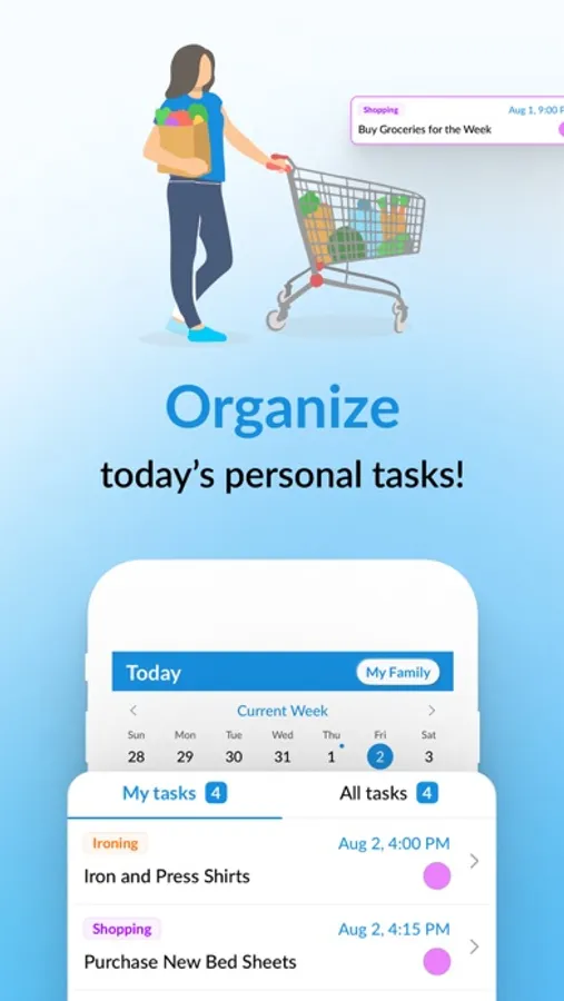 • Family chore manager that keeps everyone on the same page—parents, teens and young kids alike.
