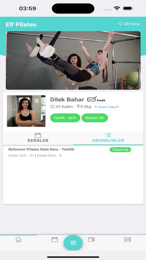 Ayrıca alışverişlerinize, aboneliklerinize, kaç gün kaç ders kaldığına bakabilir abonelik satın alabilirsiniz.