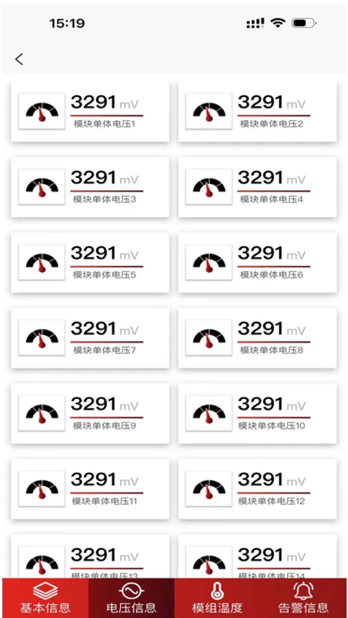 2、可对电池进行信息可视化查询管理,用户能查询到每一串电池相关状态,对异常的电池可进行问题分析;