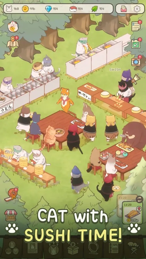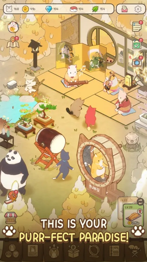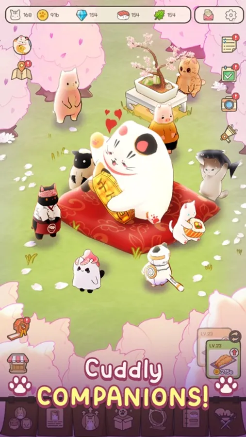 Loads of furry new friends are waiting for you in "Cat Garden - Food Party Tycoon".