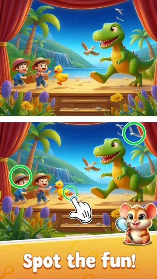 Find Differences: Spot the fun is the perfect game for anyone who loves cartoons, puzzles, and challenges. Download it now and start spotting the fun!
