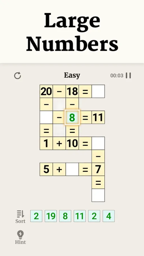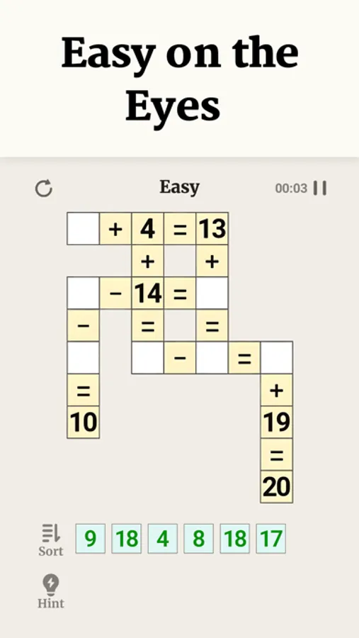 Vita Math Puzzle is a Cross Math Game designed for senior citizens. Our logic game offers thousands of challenging number puzzles with large numbers and an eye-friendly interface, ideal for iPad and iPhone. Download the math game and start relaxing and training your brain now!