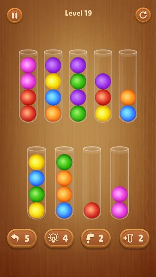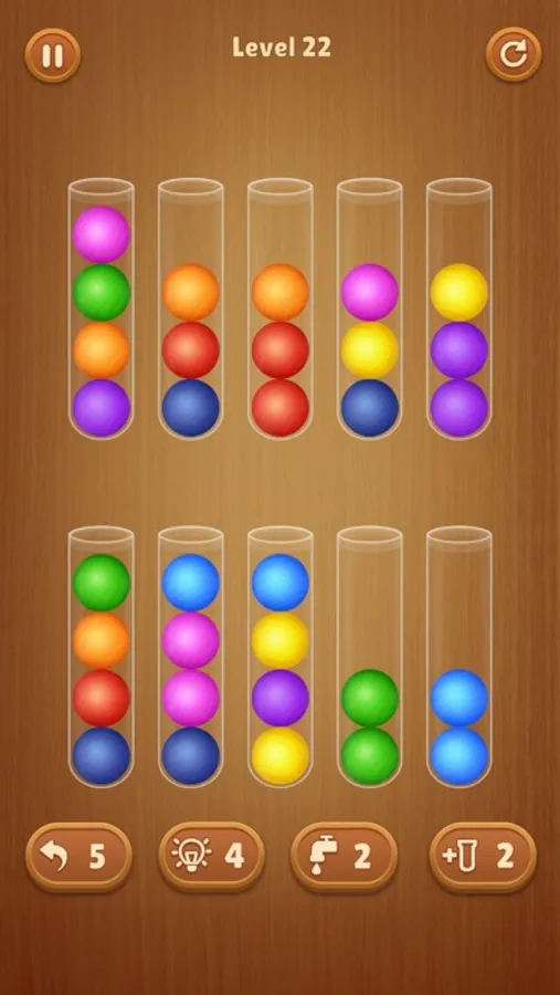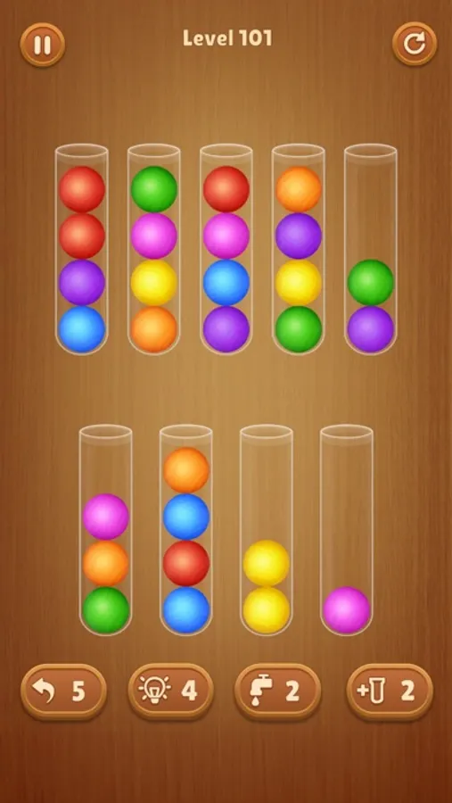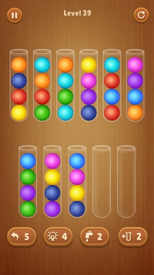 Color Ball Sort Woody Puzzle is a free time killer game. Gameplay is very simple: just tap the tube to sort all the same color balls into the tubes. The winning condition of the game is that the balls of the same color are placed in the same tube. A challenging yet relaxing game to exercise your brain!