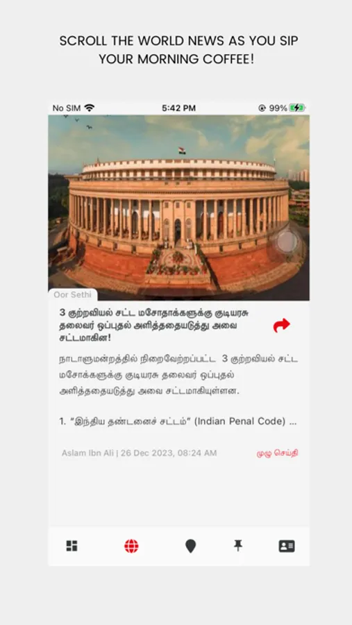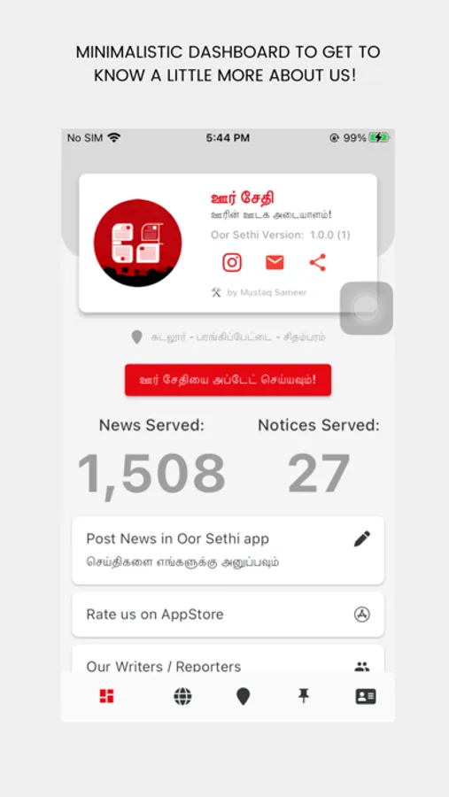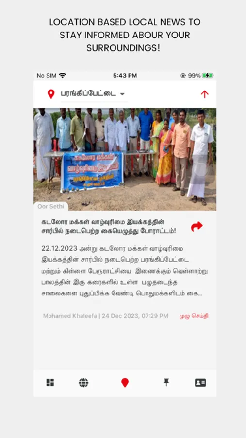 Since the news are published in Native language (currently Tamil) written by the talented writers from the same locality, people will have no trouble in understanding the news and will have instant updates on some of the impactful / important events happening in the neighbourhood.