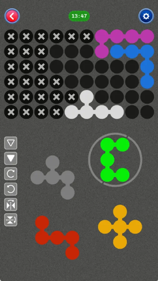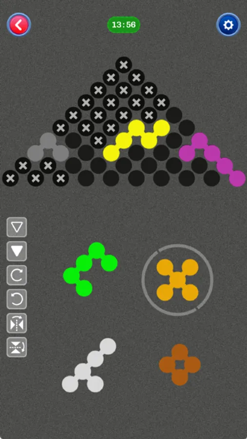 Simply place a shape in the holes according to the board & make sure they match up. Once you fill the board, you are left with empty spaces & left over shapes. The challenge is to fit those left over shapes into the empty spaces correctly, completing the board. The puzzles start off easy at first with only a couple of shapes missing. As you master that, the puzzles become more difficult & challenging.
