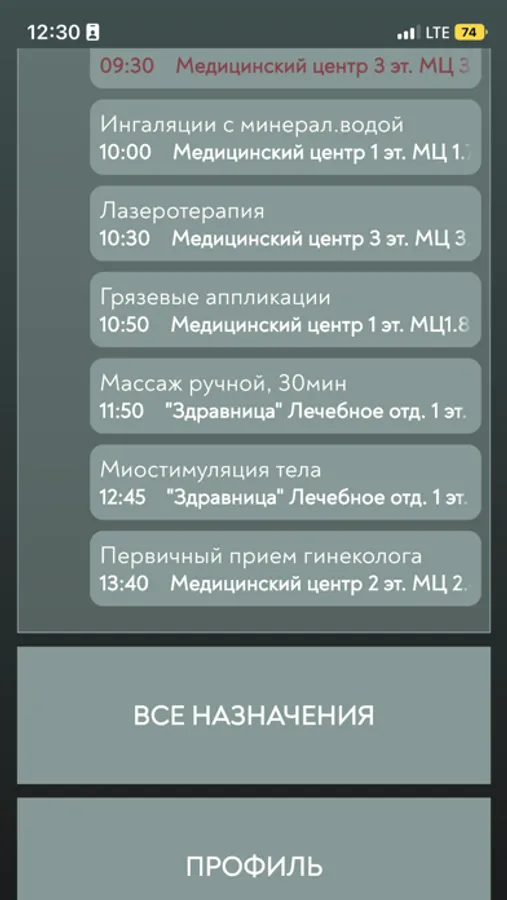 - добавить самостоятельно в свое расписание процедуры, доступные без консультации врача.