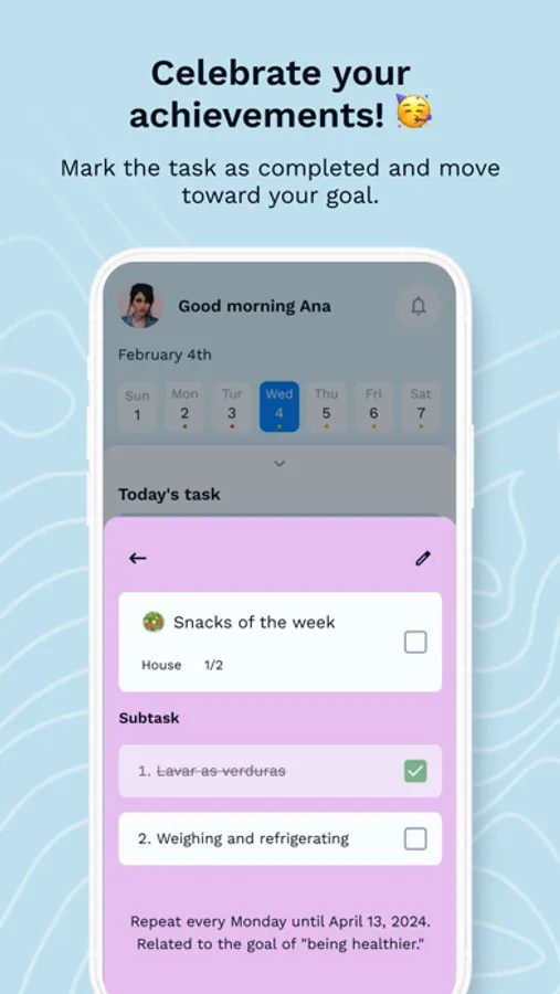 Break down Goals into manageable Targets: Define milestones and track progress with checklists for each step.