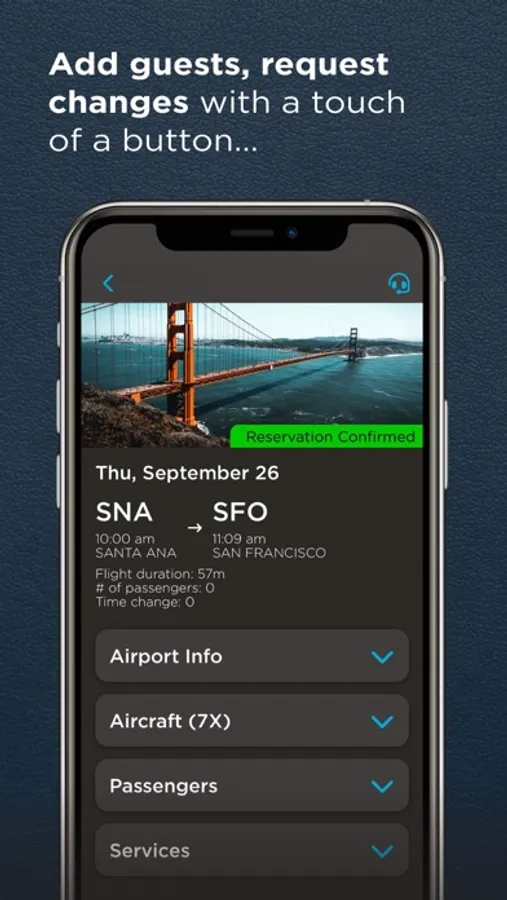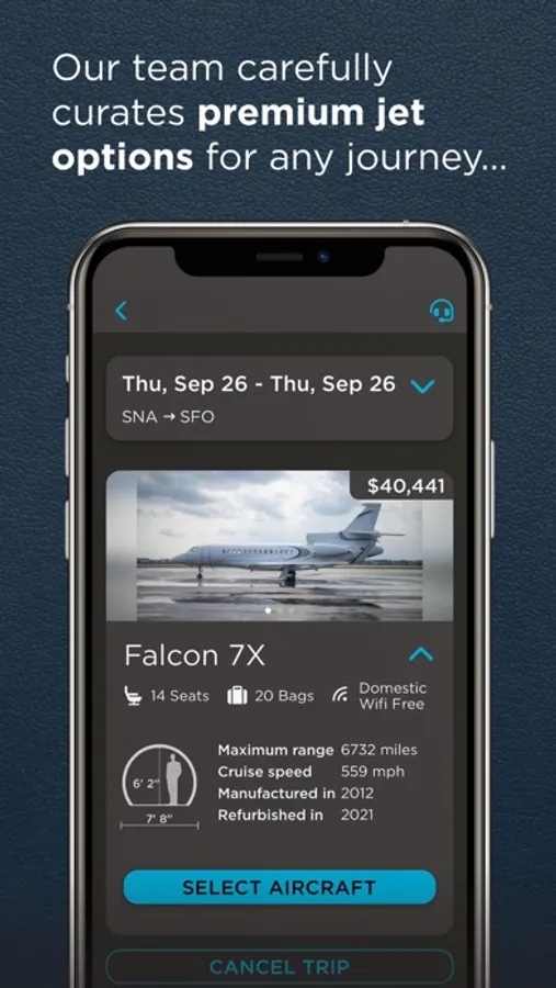 The app’s booking process allows users to choose from round trips and one-ways while setting departure and arrival times, airport pairs and aircraft class categories determined by the flyer or passenger number input. Clients receive proposals consisting of various options for aircraft including tail numbers and aircraft specifications curated by a dedicated member of the PJS team from Trip Request details submitted in the app.